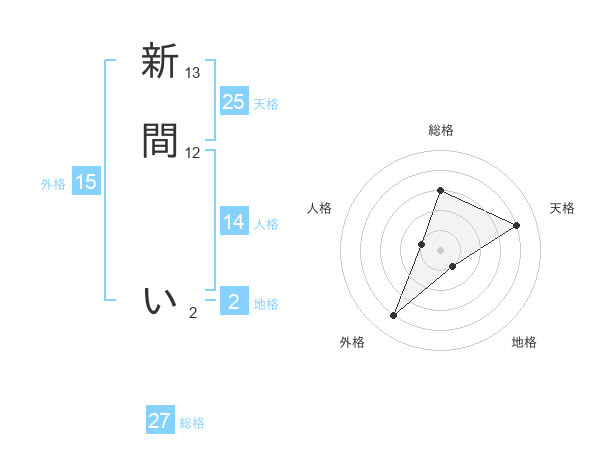 新間 いさんの外格は15画の4点!