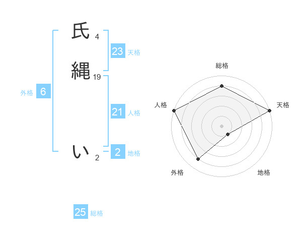 氏縄 いさんの天格は23画の5点!