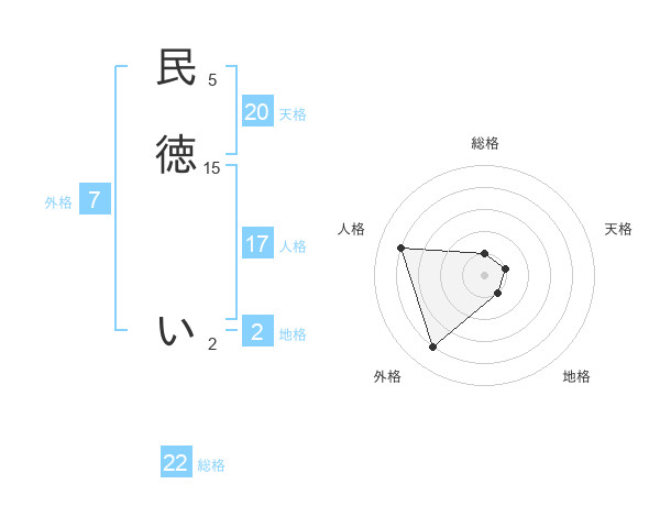 民徳 いさんの天格は20画の1点!