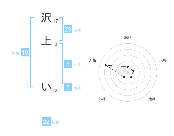 沢上 いさんの総格は22画の1点!