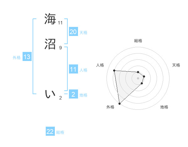 海沼 いさんの総格は22画の1点!