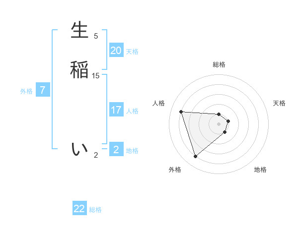生稲 いさんの総格は22画の1点!