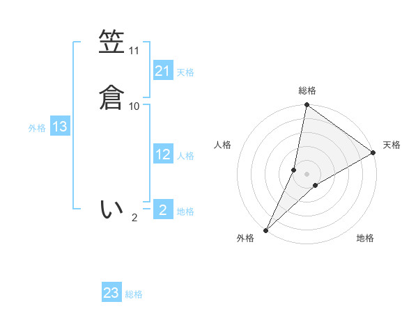 笠倉 いさんの外格は13画の5点!