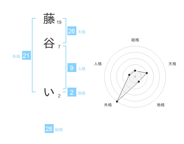 藤谷 いさんの外格は21画の5点!