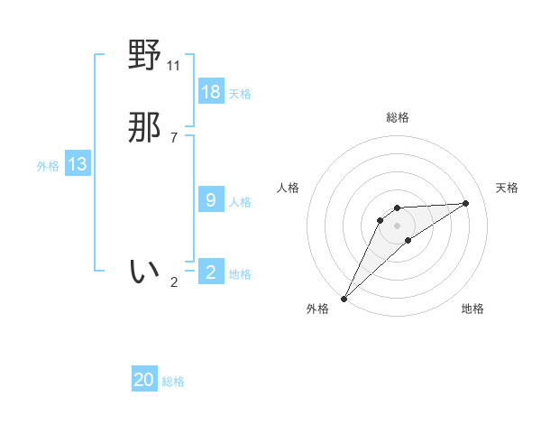 本サイトの鑑定結果の正当性は保証しません。鑑定結果は参考程度にお読みください。実際の名づけにご利用される場合は、姓名判断についてご自身でよくお調べください。