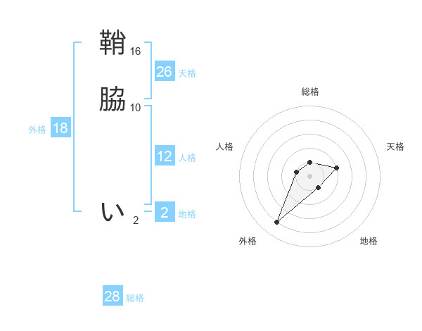 鞘脇 いさんの天格は26画の2点!