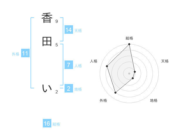 香田 いさんの総格は16画の5点!