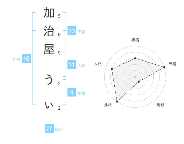 加治屋 うぃさんの天格は23画の5点!