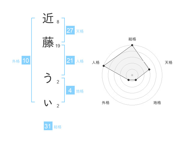 近藤 うぃさんを姓名の画数から五運を鑑定