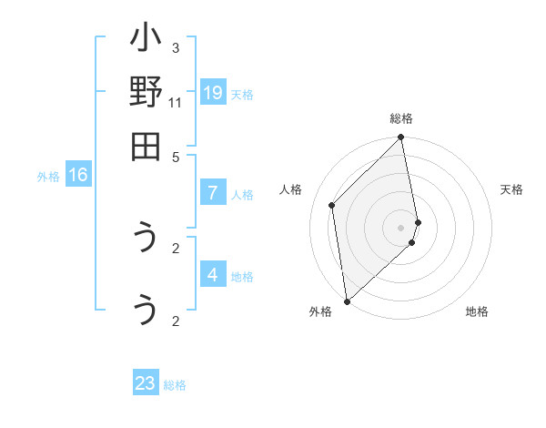 小野田 ううさんの外格は16画の5点!