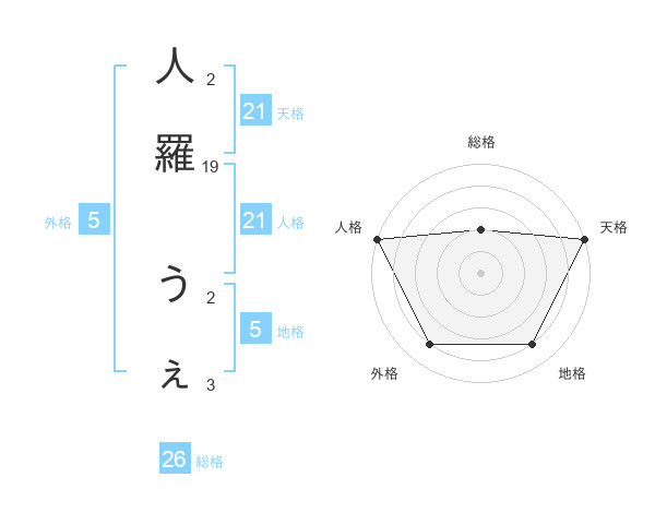 人羅 うぇさんの地格は5画の4点!