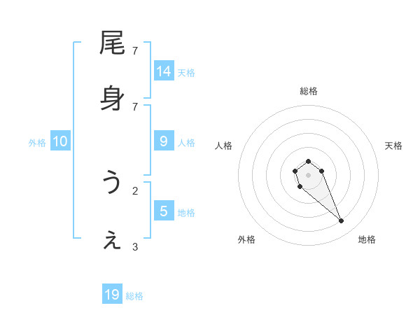 尾身 うぇさんの地格は5画の4点!