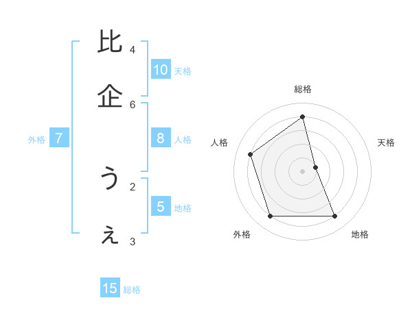 比企 うぇさんの地格は5画の4点!