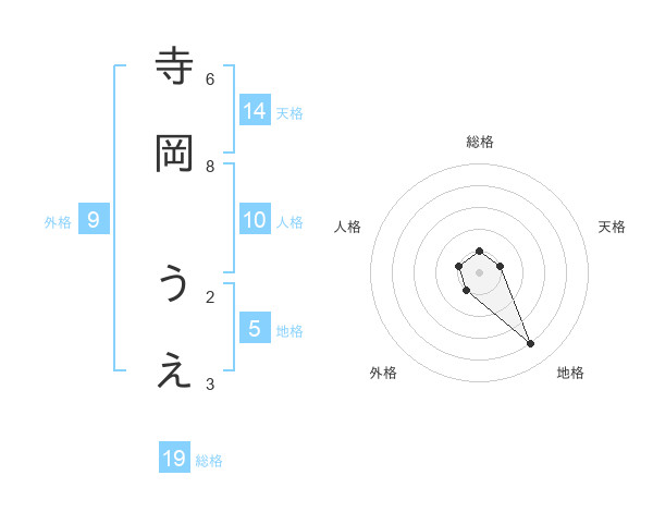 寺岡 うえさんを姓名の画数から五運を鑑定