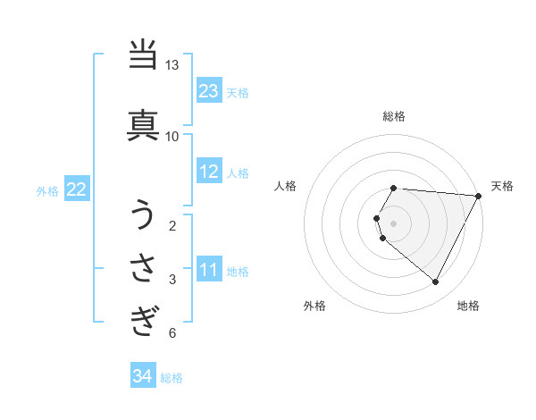 当真 うさぎさんを姓名の画数から五運を鑑定