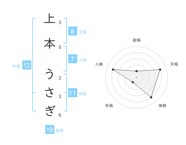 上本 うさぎさんの総格は19画の1点!