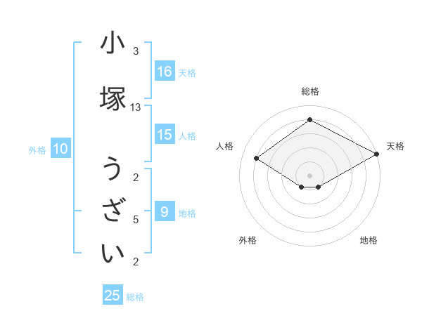 小塚 うざいさんを姓名の画数から五運を鑑定