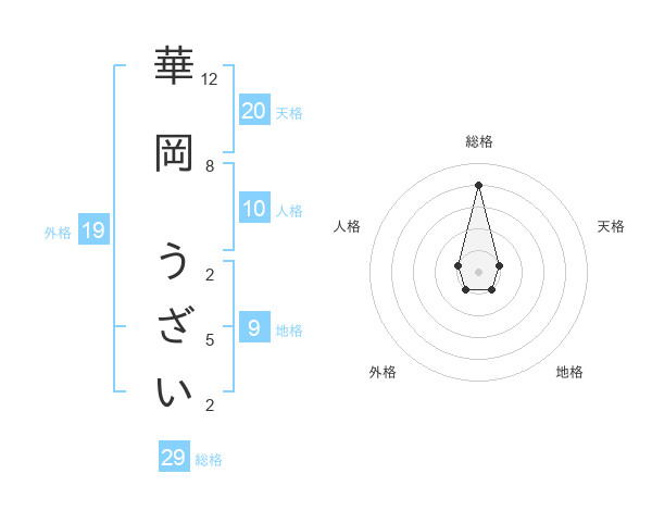 華岡 うざいさんを姓名の画数から五運を鑑定
