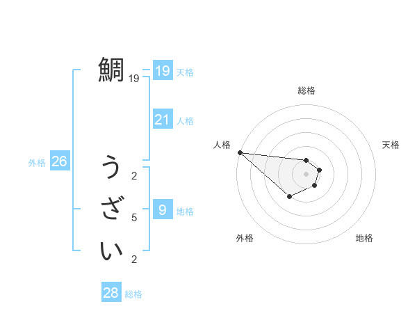 鯛 うざいさんの人格は21画の5点!
