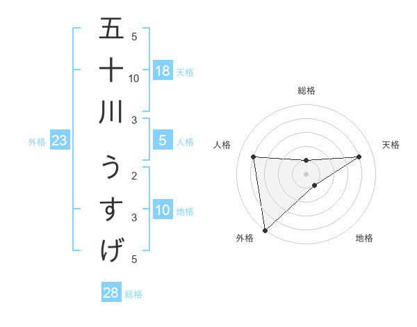 五十川 うすげさんの外格は23画の5点!