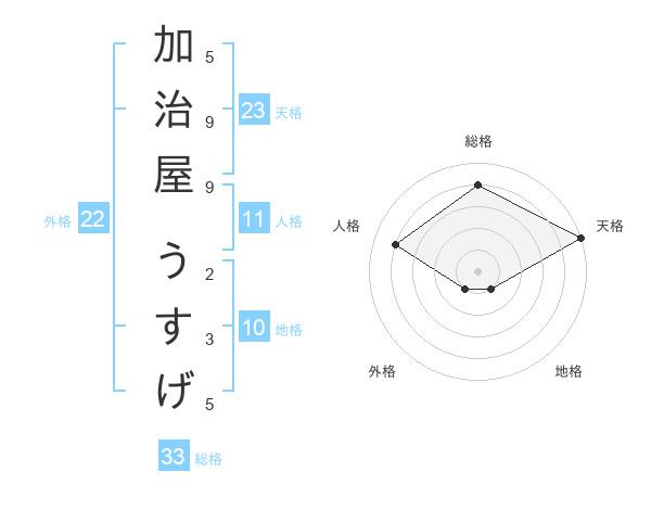 加治屋 うすげさんの天格は23画の5点!