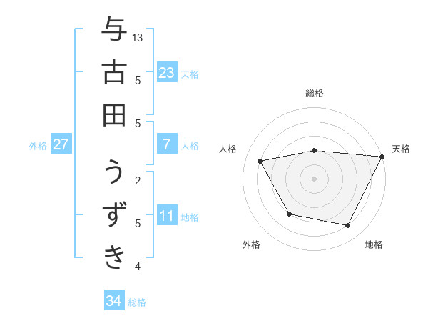 与古田 うずきさんを姓名の画数から五運を鑑定