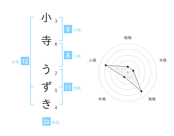 小寺 うずきさんの総格は20画の1点!