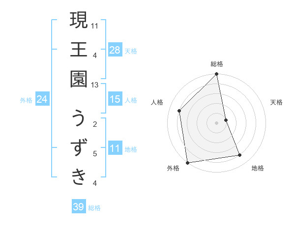 現王園 うずきさんの外格は24画の5点!