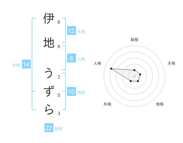 伊地 うずらさんの総格は22画の1点!