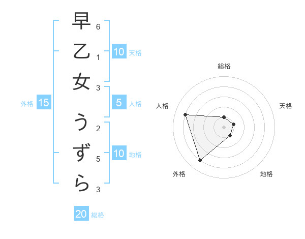 早乙女 うずらさんを姓名の画数から五運を鑑定