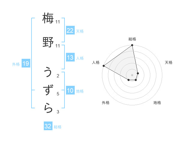 梅野 うずらさんを姓名の画数から五運を鑑定