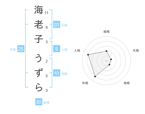 海老子 うずらさんの外格は25画の4点!
