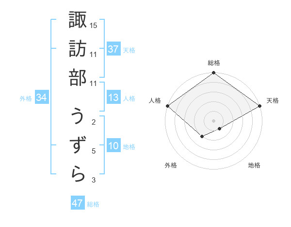 諏訪部 うずらさんの総格は47画の5点!