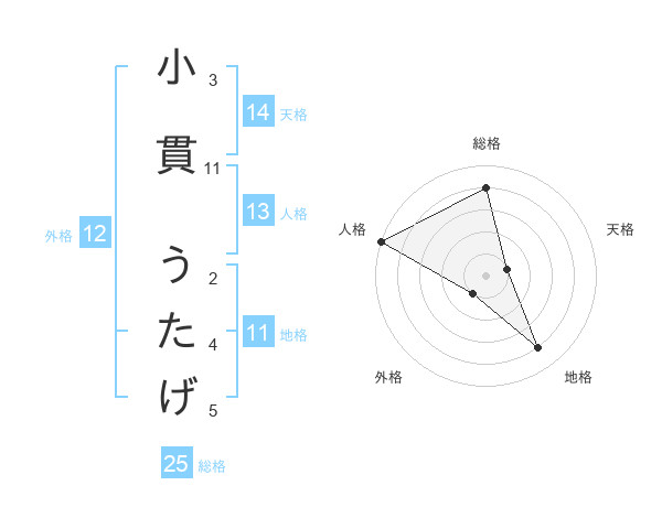 小貫 うたげさんの地格は11画の4点!