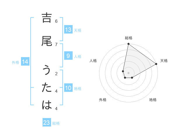 吉尾 うたはさんの天格は13画の5点!