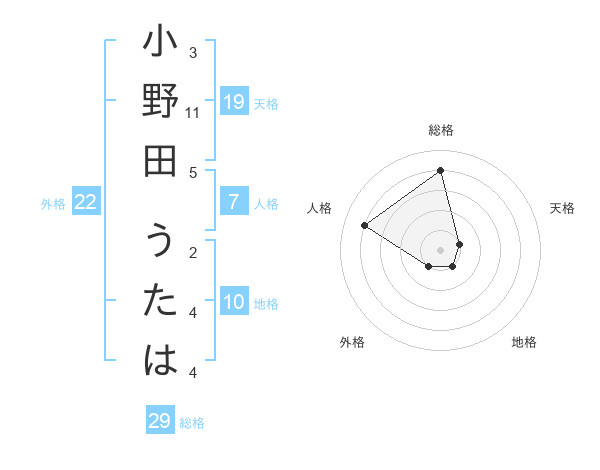 小野田 うたはさんを姓名の画数から五運を鑑定