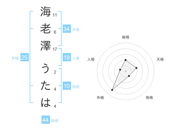 海老澤 うたはさんの総格は44画の2点!