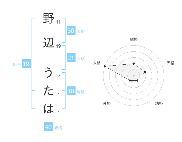 野辺 うたはさんを姓名の画数から五運を鑑定