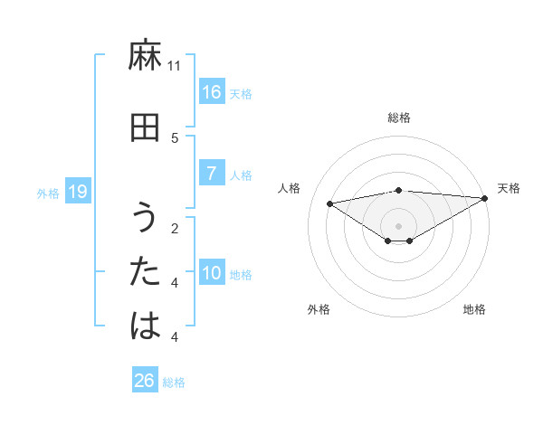 麻田 うたはさんを姓名の画数から五運を鑑定