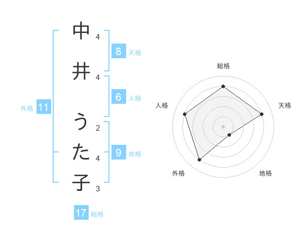 中井 うた子さんの総格は17画の4点!