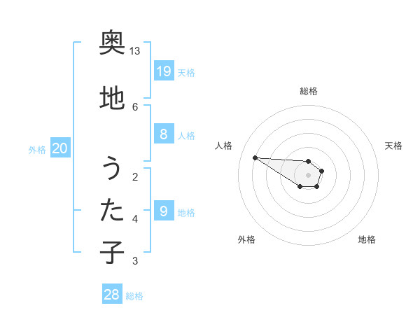 奥地 うた子さんを姓名の画数から五運を鑑定