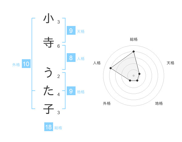 小寺 うた子さんを姓名の画数から五運を鑑定
