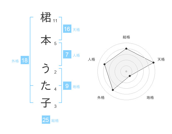 桾本 うた子さんを姓名の画数から五運を鑑定