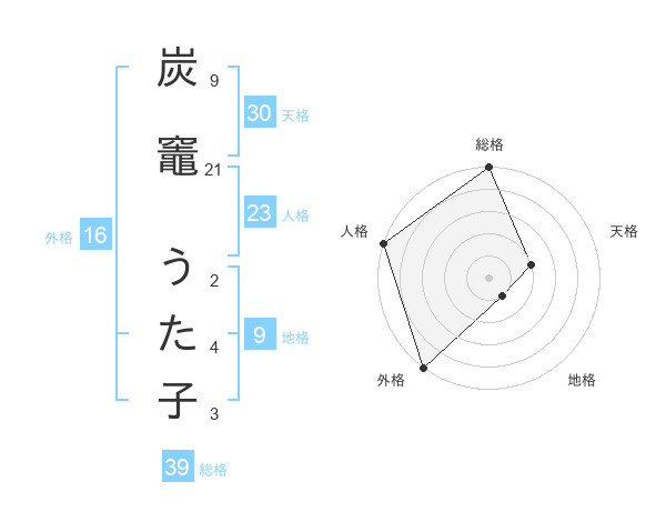 炭竈 うた子さんを姓名の画数から五運を鑑定