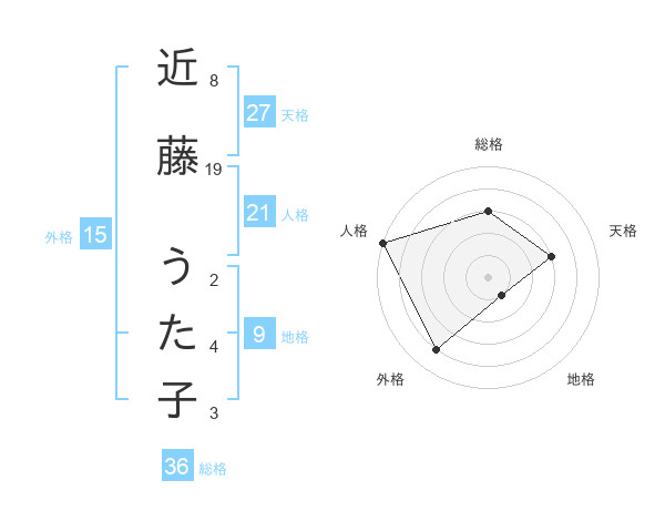 近藤 うた子さんを姓名の画数から五運を鑑定