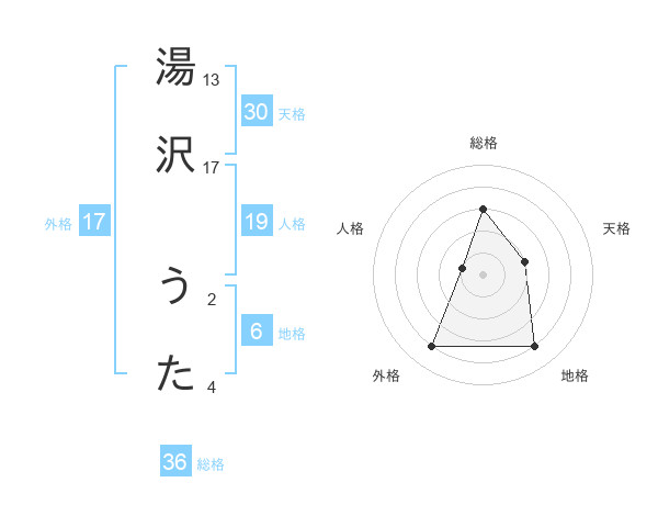 湯沢 うたさんの総格は36画の3点!