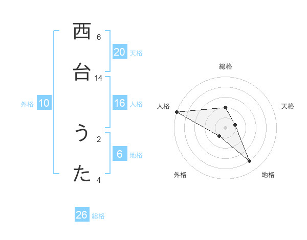 西台 うたさんの総格は26画の2点!