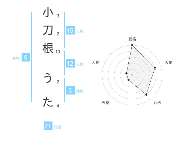 小刀根 うたさんを姓名の画数から五運を鑑定