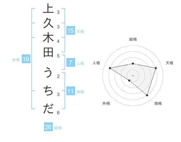 上久木田 うちださんを姓名の画数から五運を鑑定