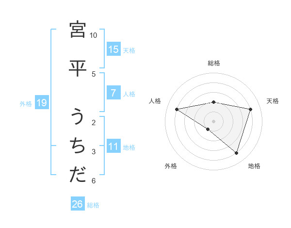 宮平 うちださんの総格は26画の2点!